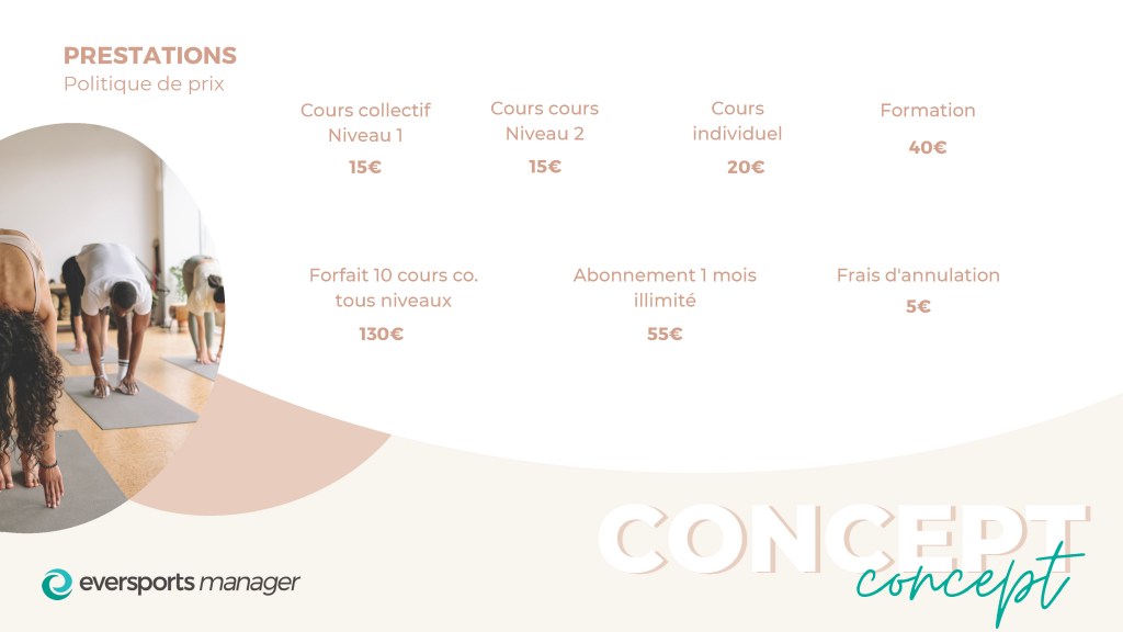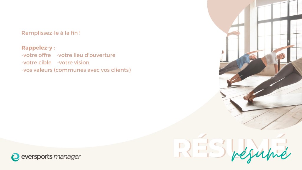 Creation of a pre-filled business plan template for yoga studio. This resource is downloadable on Eversports Manager .