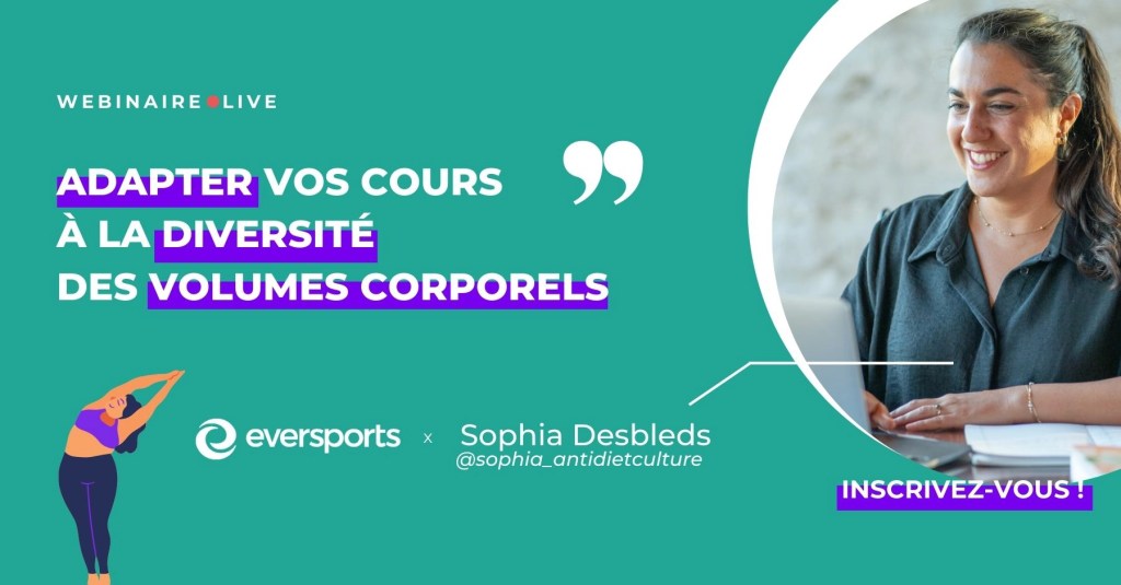 Teasing video to promote the webinar organized between Eversports and Sophia Desbleds about how to adapt yoga classes to all types of bodies.