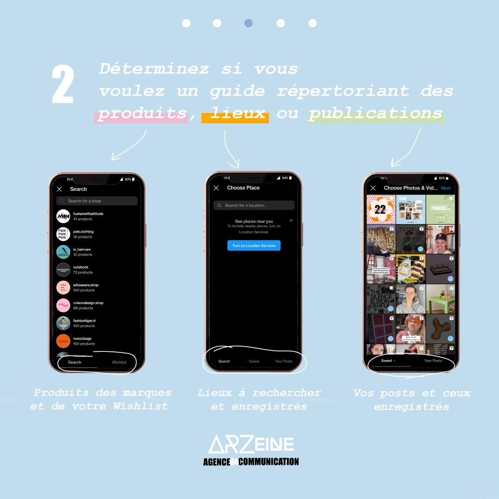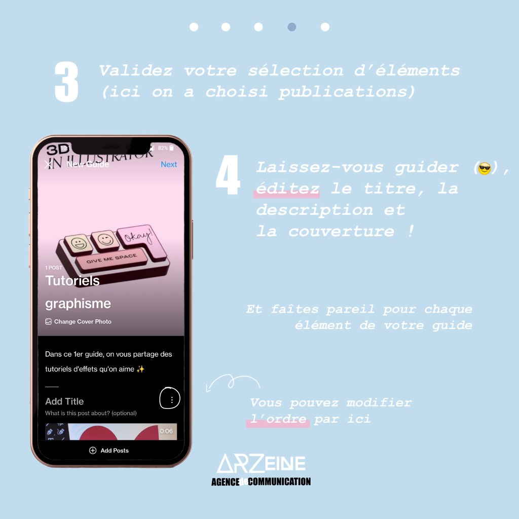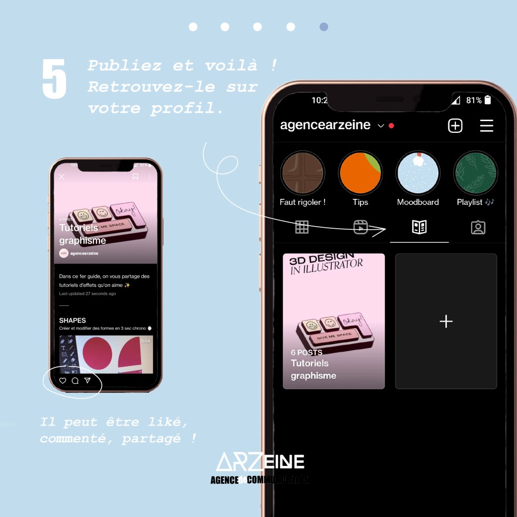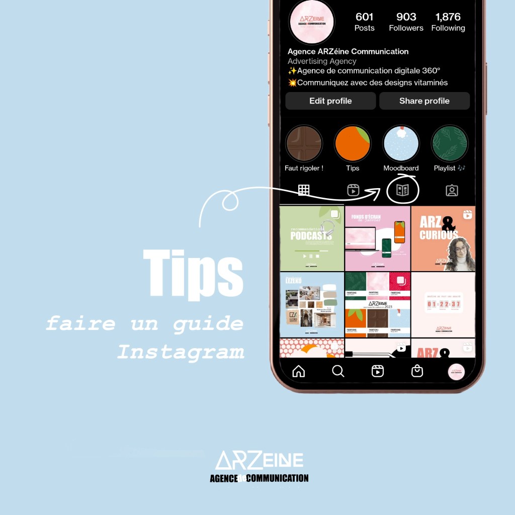 Carousel of tips about Instagram guides for the social media accounts of the advertising agency Arzéine.