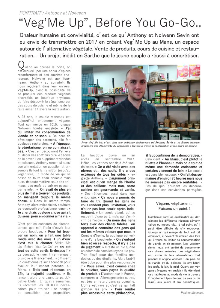 Portrait report from young merchants about their vegan shop using journalistic rules.